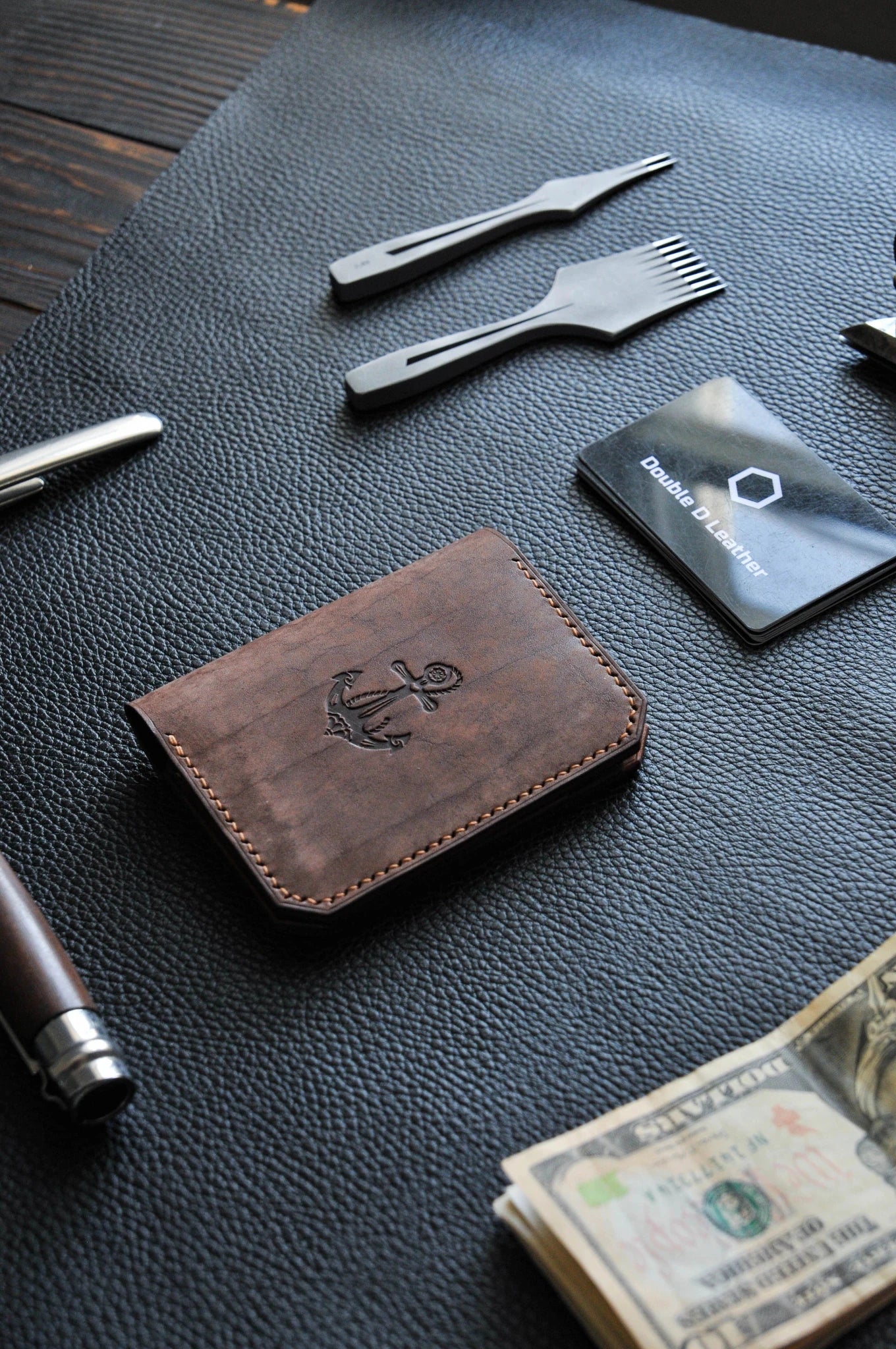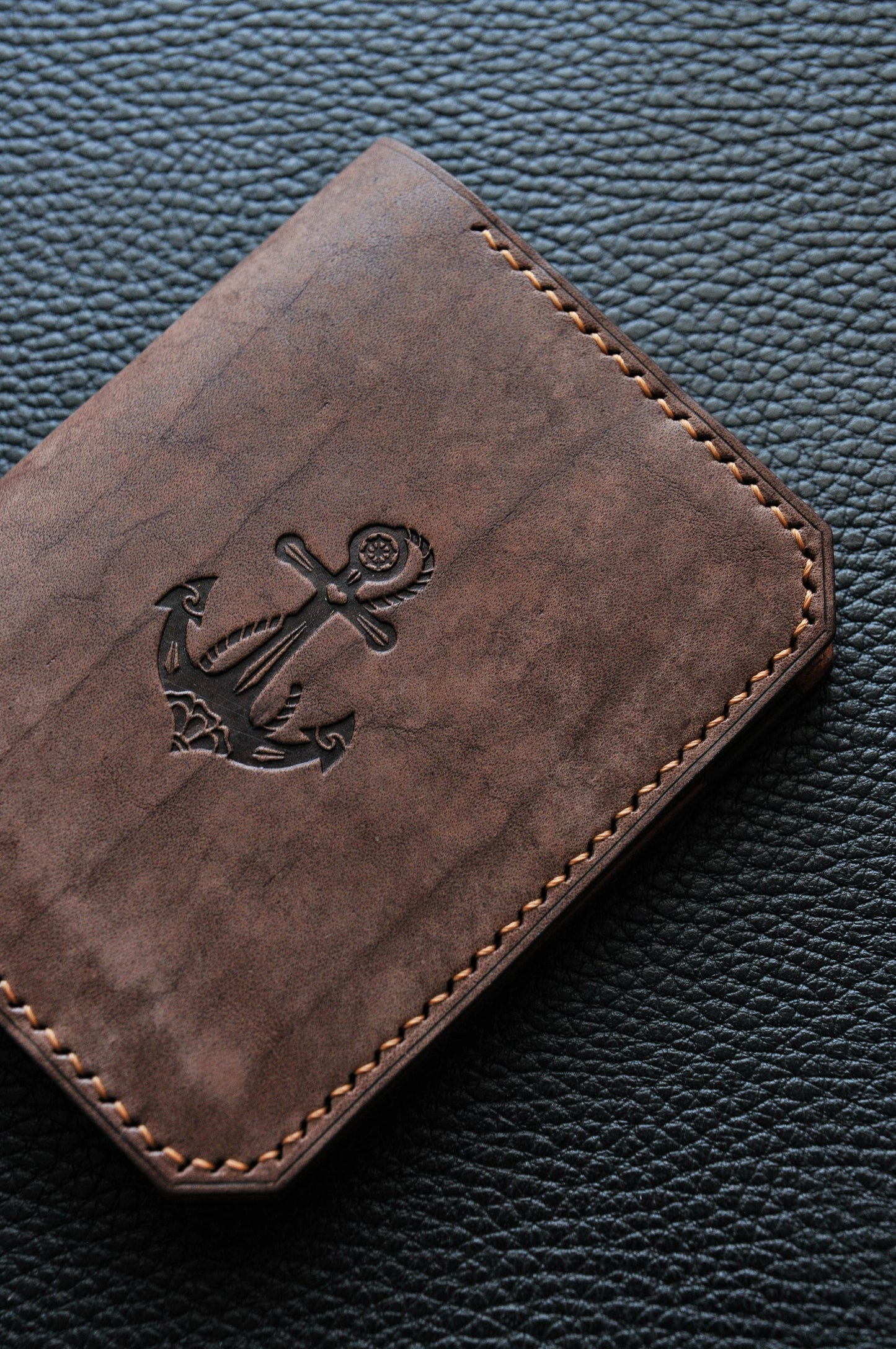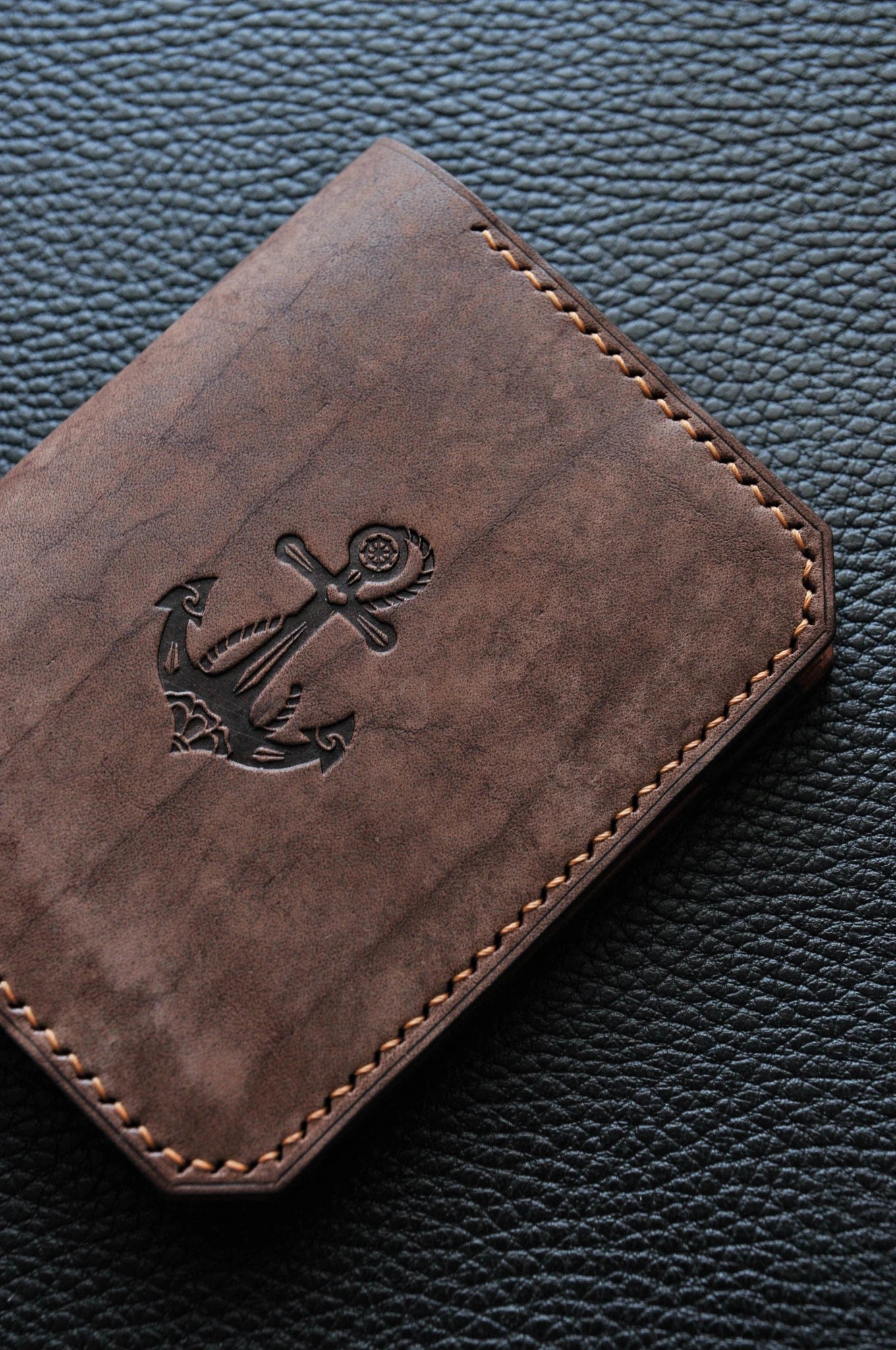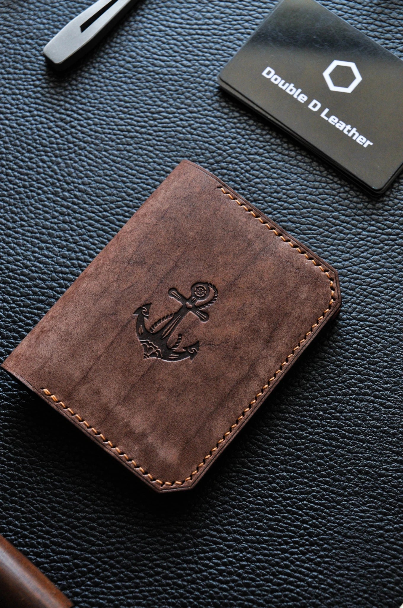 Minimalist leather wallet with anchor