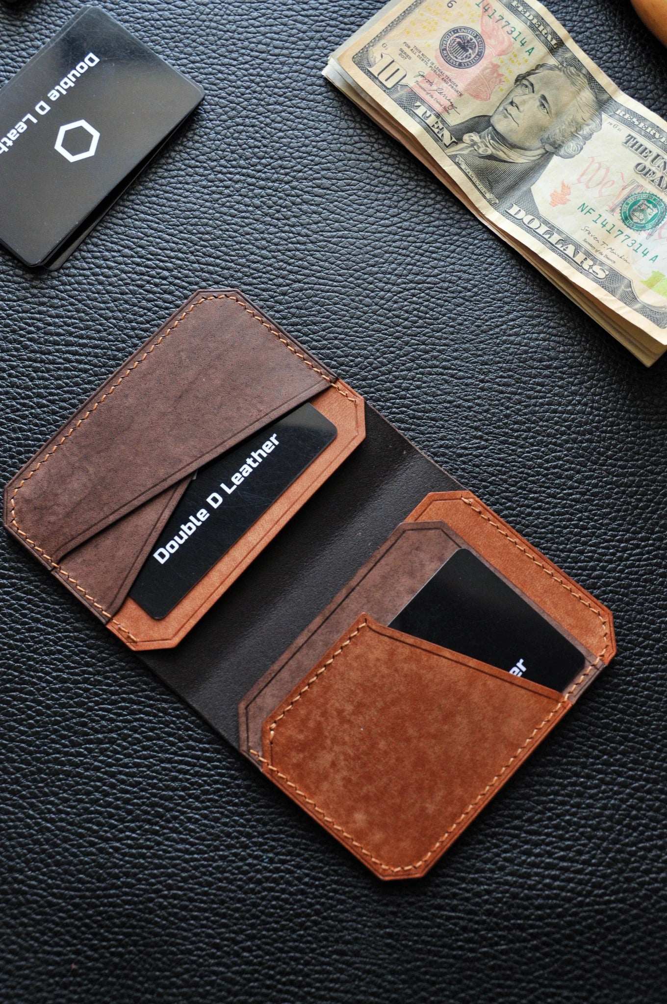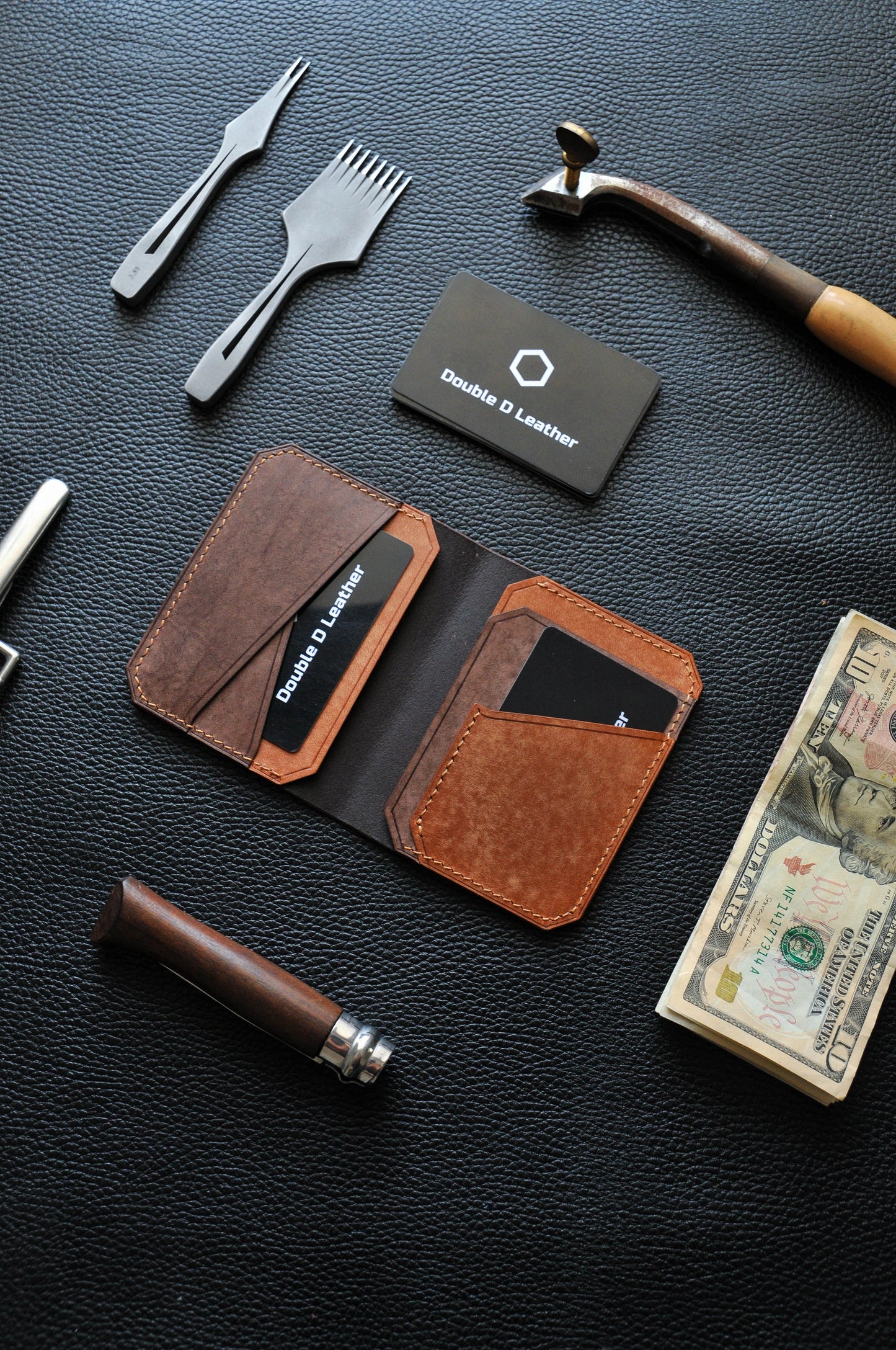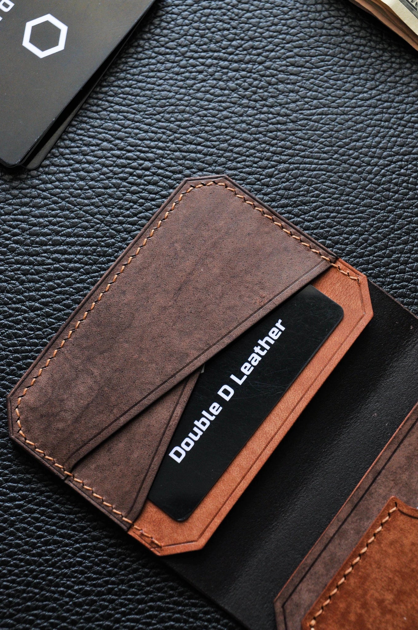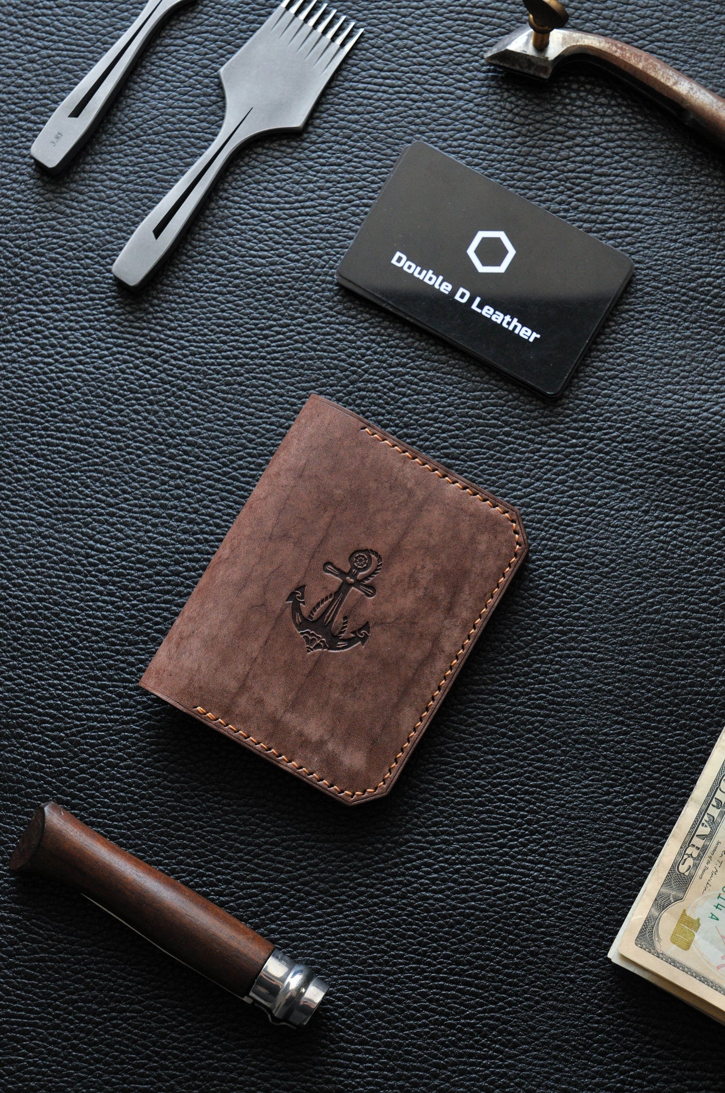 Minimalist leather wallet with anchor